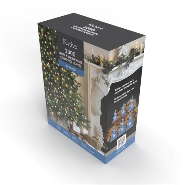 Bring sophistication to your home with the 2000 Compact White and Warm White Christmas Lights on White Cable. With 2000 LEDs blending crisp white and soft warm white tones, this set creates a chic, balanced glow for your Christmas tree, garlands, or feature displays. Offering 12.99 m of lit length and a 10 m lead cable, it’s perfect for versatile decorating both indoors and outdoors. With memory, timer, and multi-function modes, these energy-efficient LED lights are designed for effortless control and long-lasting festive brilliance.
