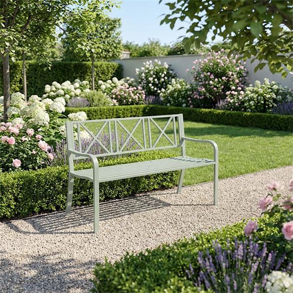 Our Bench in Sintra Green adds a bold, nature-inspired colour accent to outdoor spaces while delivering dependable, everyday seating. Finished in a striking Sintra green tone, the powder-coated steel frame brings character and colour within garden and patio settings. Designed for long-term outdoor use, the durable steel construction offers excellent resistance to rust and weathering throughout the seasons. With its clean-lined design and generous seating capacity, this outdoor steel bench provides a practical and even eye-catching seating solution for gardens, patios, or porch areas.