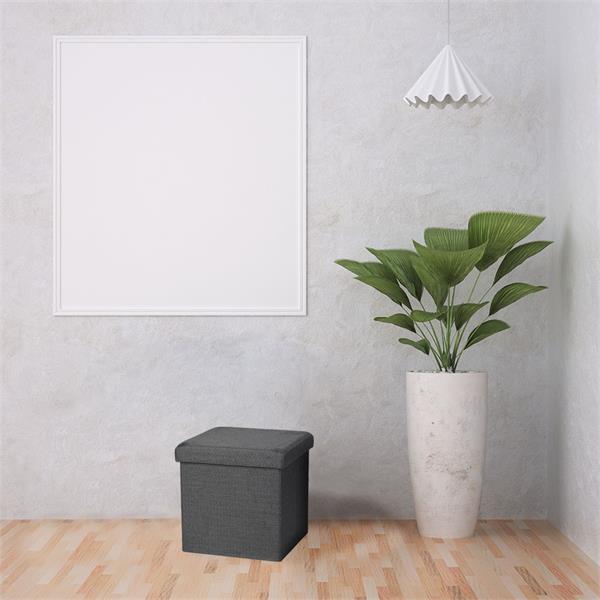 Add a touch of elegance to your home with the Foldable Storage Ottoman - Anthracite 38cmx38cm, combining style, durability, and functionality. Upholstered in sleek fabric with meticulous stitching, this ottoman doubles as a comfortable seat, footrest or bedside storage. Designed with sturdy MDF panels, it supports up to 286 lbs (130 kg) while offering a practical 32L storage capacity for bed sheets, pillows, or magazines. Whatever you need to put away! Its folding design allows for easy setup and space-saving storage, making it ideal for versatile use in living rooms, bedrooms, or hallways.