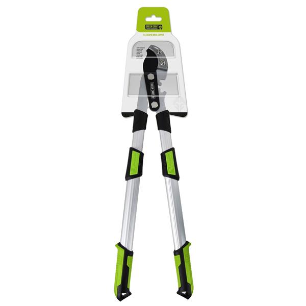 • Telescopic aluminium alloy handle with dual grip extends for greater reach when overhead pruning and branch cutting.