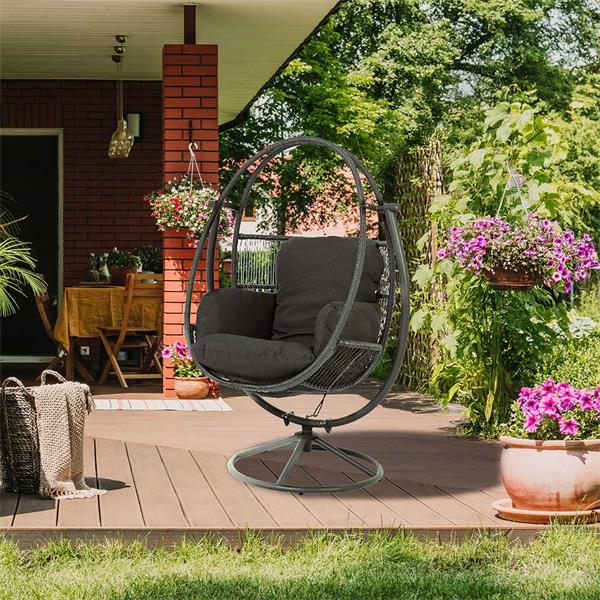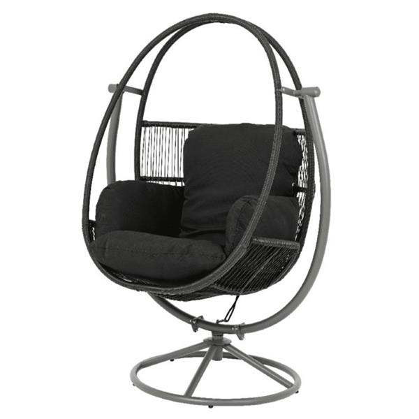Premium Wicker Swivel Egg Chair in Black with Black Cushion