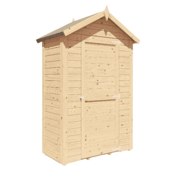 This compact 4 x 2ft shed is perfect for smaller spaces, offering efficient storage with a sturdy build. Measuring W120xD62cm and covering 0.75m², the shed features a maximum ridge height of 206cm, providing ample headroom. Constructed with a 12mm MFP-P5 roof thickness and a snow load capacity of 0.85kN/m², it's built to withstand the elements. The complete kit includes roofing felt and floor, with all parts prefabricated for easy assembly—no sawing or screwing of individual wall panels required. Featuring a 14" round profile tongue and groove design, this shed offers both durability and ease of use for your outdoor storage needs.