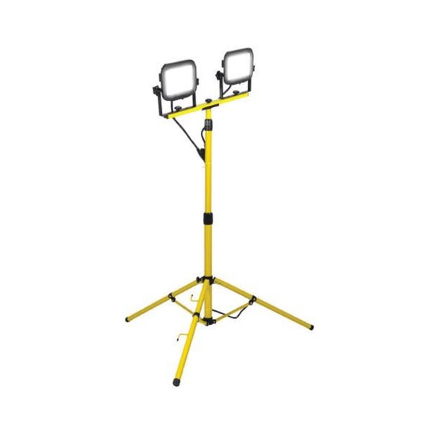 This aluminium tripod work light features fully adjustable heads, extending up to 1.5m for versatile positioning on a 110V site supply. The IP65-rated LED heads provide optimum light spread, delivering 2 × 2000 lumens (2 × 20W) of bright, efficient illumination. It comes fitted with a 3000mm H07RN-F 3-core rubber cable and an IP44-rated plug, along with a weatherproof power switch for safe and reliable use in demanding site conditions.