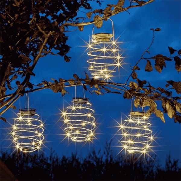• 4-pack of solar-powered hanging spiral lanterns - Dimensions 21 x 12 cm