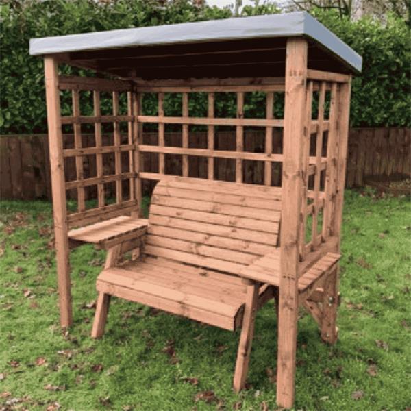 Add a snug hideaway to your Irish garden retreat with the Wentworth Wooden Two Seater Arbour Seat. Crafted from tough FSC-approved Scandinavian Redwood, this weather-resistant garden arbour features a charming slatted design and a protective grey roof cover for shaded comfort from the elements. Whether placed in a secluded garden nook, on a raised deck or as an outdoor living feature piece on a patio, this wooden arbour seat provides a cosy space for outdoor relaxation.